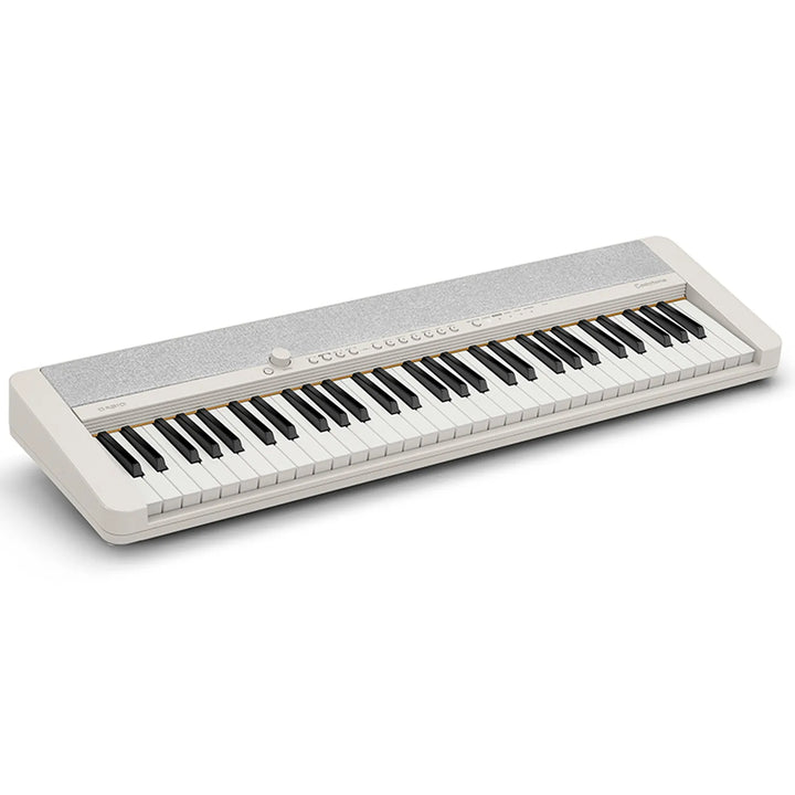 El compacto diseño del CT-S1 garantiza que tu música siempre te acompañe para tocar en cualquier momento y lugar, con la máxima facilidad. Sin preparativos. Fácil de guardar. Música e innovación siempre al alcance de tu mano. Su estilizado diseño cabe en cualquier espacio, para que puedas cambiar tu forma de tocar según tu estado de ánimo gracias a una forma que se adapta a todo tipo de espacios reducidos. Incluso incluye pasadores para que le pongas una correa y toques sin un soporte o una mesa. Tanto si estás en el sofá rodeado de tu familia o descansando en tu dormitorio, toca donde y cuando te apetezca.
