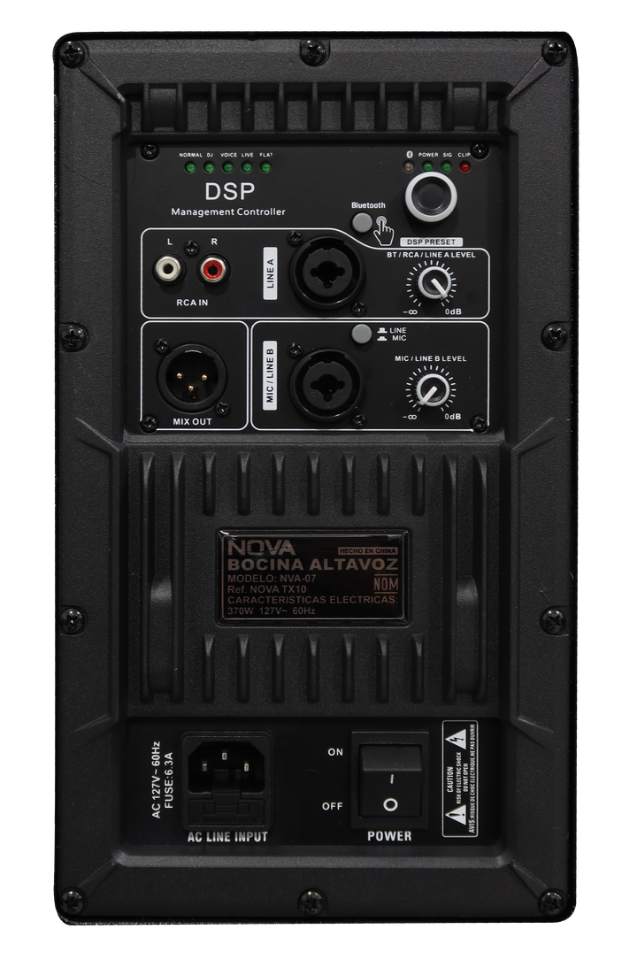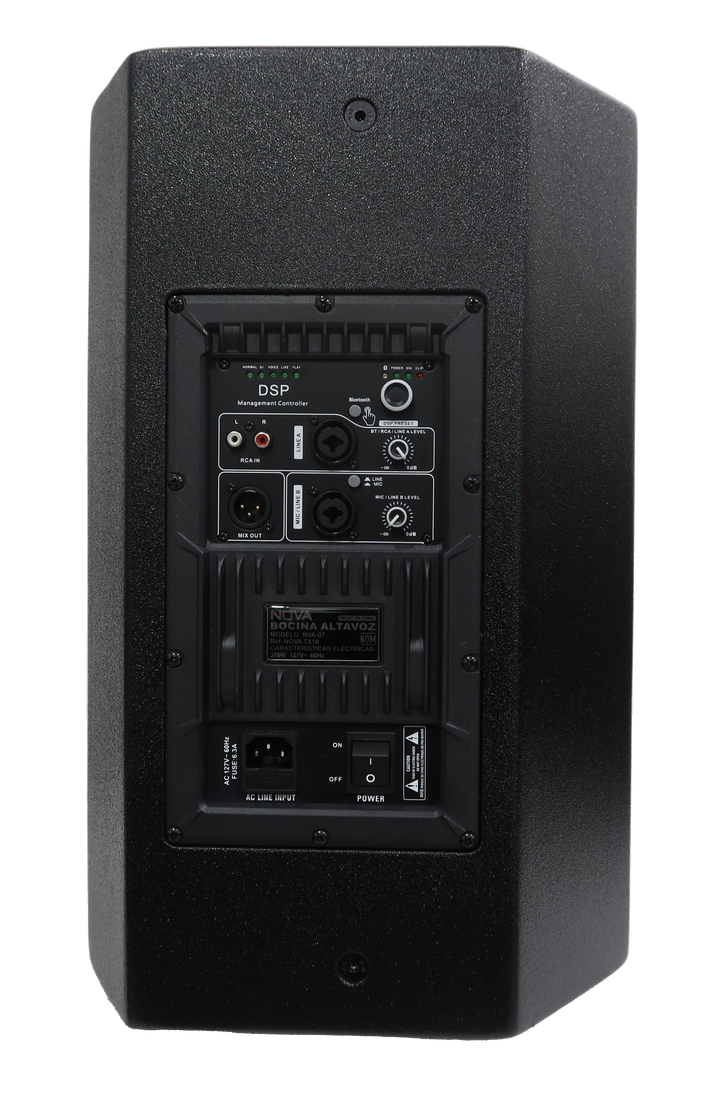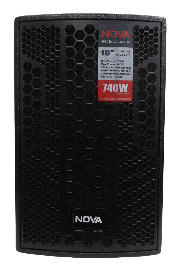 Además, su logo retroiluminado aporta un toque visual profesional, ideal para presentaciones en vivo y eventos. Con 370W de potencia RMS, la NOVA TX10 entrega un rendimiento sólido, ideal para DJs, músicos, sistemas multimedia y todo tipo de eventos en vivo donde se requiera potencia y claridad de sonido.