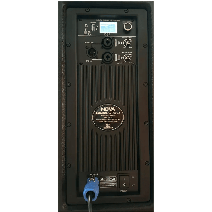 La Vamav NOVA TX15 es una caja amplificada profesional diseñada para quienes buscan potencia, claridad y graves profundos. Con una potencia RMS de 630 W y potencia máxima de 1250 W, esta bocina ofrece un rendimiento excepcional, capaz de llenar espacios medianos y grandes con un sonido limpio y equilibrado.