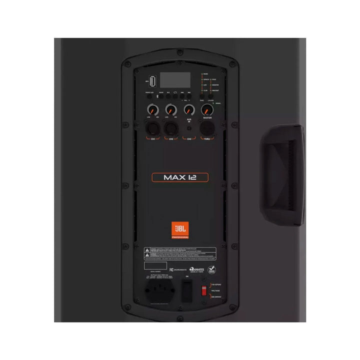 El modelo MAX 12 entrega 350W de potencia en un sistema de 2 vías. Esta caja activa combina excelente calidad de sonido, alto volumen, y una interfaz intuitiva con una amplia gama de funciones, todo a un precio muy competitivo. Incorpora dos entradas combo que permiten conectar tanto micrófonos como instrumentos, con cambio automático entre modo micrófono y línea según el ajuste de volumen. Puedes reproducir música vía Bluetooth o desde un pendrive USB, con navegación de carpetas visible en pantalla.