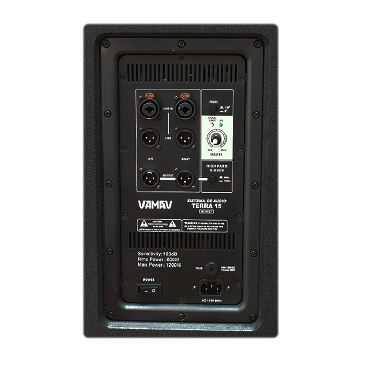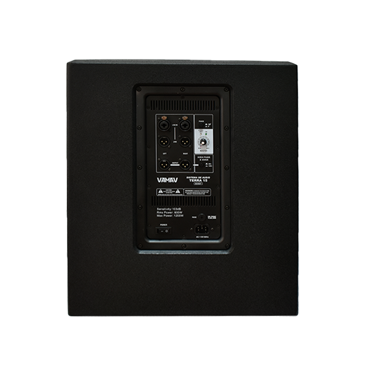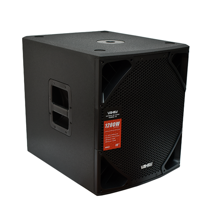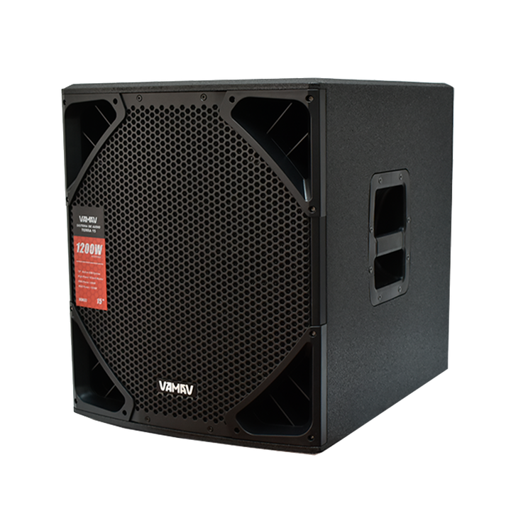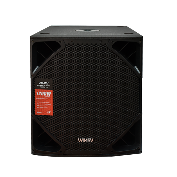 El Vamav TERRA 15 es un subwoofer activo profesional de 15 pulgadas diseñado para ofrecer graves profundos, alta presión sonora y reproducción precisa en cualquier entorno profesional. Con una potencia RMS de 600 W y sensibilidad de 103 dB a 1 metro, este subwoofer garantiza un rendimiento sólido y consistente, ideal para eventos en vivo, clubes, DJs y sistemas multimedia.